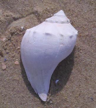 Approaching the inlet, ghostly white dust devils of fine sand dance in the southerly breeze before me, leading me onward to the north. The slope of the shoreline becomes more and more shallow until it is almost flat, and it looks as if the waves are going to stage a frontal assault on the island and wash over it right before my eyes. Large, sinister flocks of gulls seem unconcerned by this prospect, however, waiting patiently for prey to come their way. At the tideline, a tiny burrowing clam less than a quarter of an inch across digs frantically into the wet sand at my approach. I pass through a field thickly strewn with whelk shells and think to myself defensively, as I bend down to collect them, of the variety of colors and shapes they offer, even though they all seem to be familiar knobbed whelks with their clockwise spiral—not a single counterclockwise lightning whelk among them. Outside they are blue-gray, white or mottled brown; inside, a deep but tender pink. Further along, the whole whelk shells disappear and are replaced by fragments mingled with much more numerous clam, oyster, scallop and mussel. This explains the gatherings of gulls, looking for remains of the shells’ previous occupants; and no doubt, some of the shells are dropped garbage from the birds’ previous meals. I spurn the fragments, as I suppose most people would—we are snobs of the perfect, like the classical Greeks with their circle fetish—and yet broken things have their own magic, especially broken whelk shells, which are like a half-demolished house with the interiors of their rooms exposed. These shells reveal to the outer world the somehow private purplish pink of their interior walls and the slender tubes at the heart of their spirals. Likewise, broken snail shells reveal their spiralling inner chambers, with their outer faces looking like the face of a clock stopped forever.