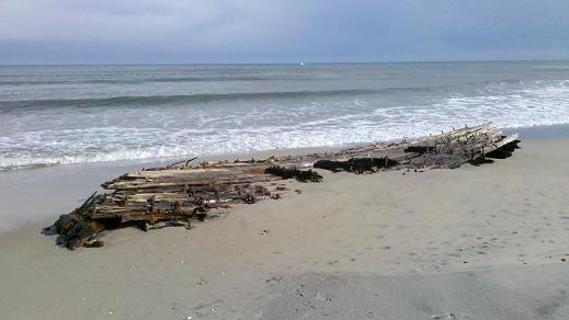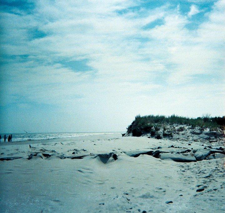 Broken and lost things. In Wrotten’s book and the National Seashore Visitors’ Center, there is reproduced a photograph of the stumps of an ancient cedar forest now washed by the surf as the island “migrates” westward. I keep hoping to see this for myself, but there is no sign of it, all the way to the inlet. However, Wrotten wrote forty years ago, and the picture must be older than that; long enough for the island to have further migrated toward the mainland, leaving the remains of the cedar forest to share the fate of Atlantis.