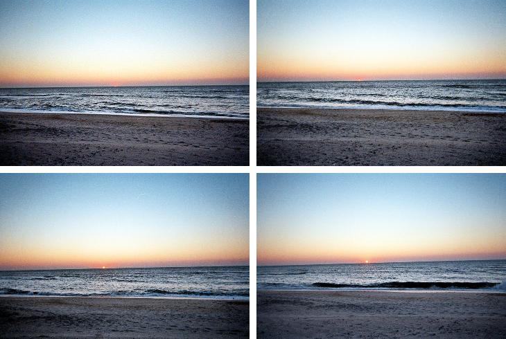 The sea is quite calm, the waves hardly any bigger than those I have seen on the enclosed Mediterranean. Driving over from Chincoteague, the water in Assateague Channel was a deep blue-green, considerably darker than it was when I crossed Sinepuxent Bay over the Verrazano Bridge yesterday afternoon. Then the water was almost a pale jade color.